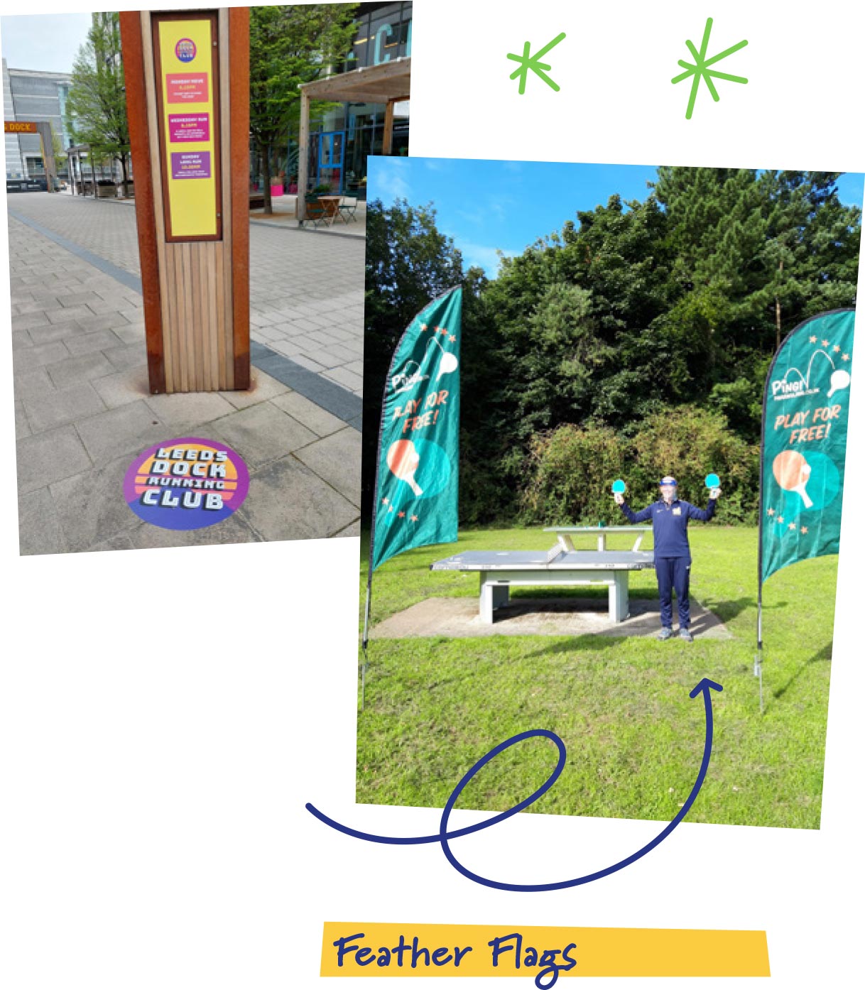 Consider using a feather flag for temporary promotions during your event, or explore the option of a permanent banner (note that this might involve obtaining permission).